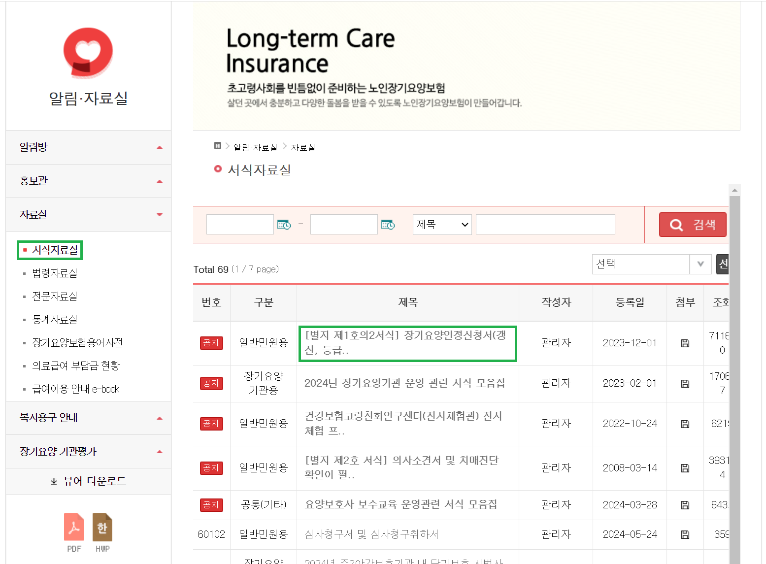 제출서류는 장기요양신청서 그리고 의사소견서가 있어야 합니다.