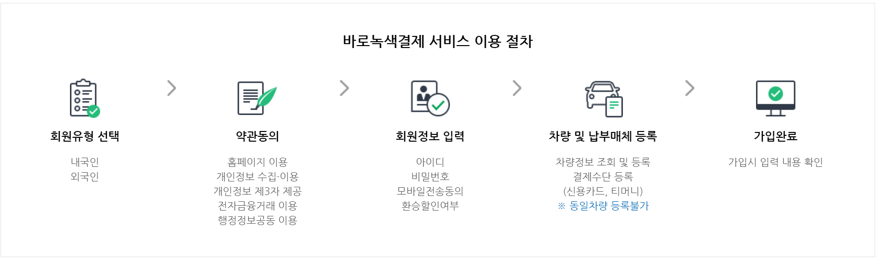 바로 녹색 결제 등록하는 방법은 해당 사이트에 접속하여 가입후 차량번호와 결제수단을 사전 등록해야 합니다.
