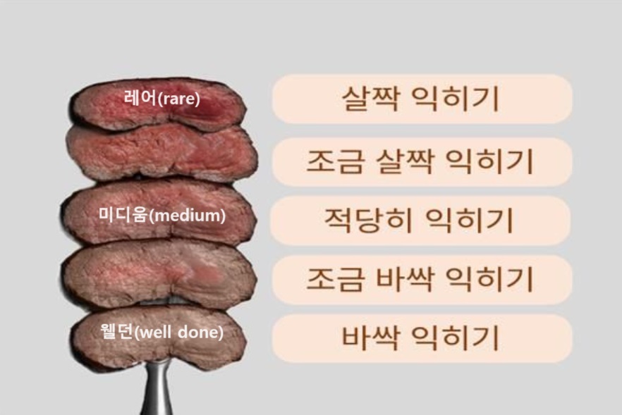 [ 레어(rare)-미디움(medium)-웰던(well done) ]