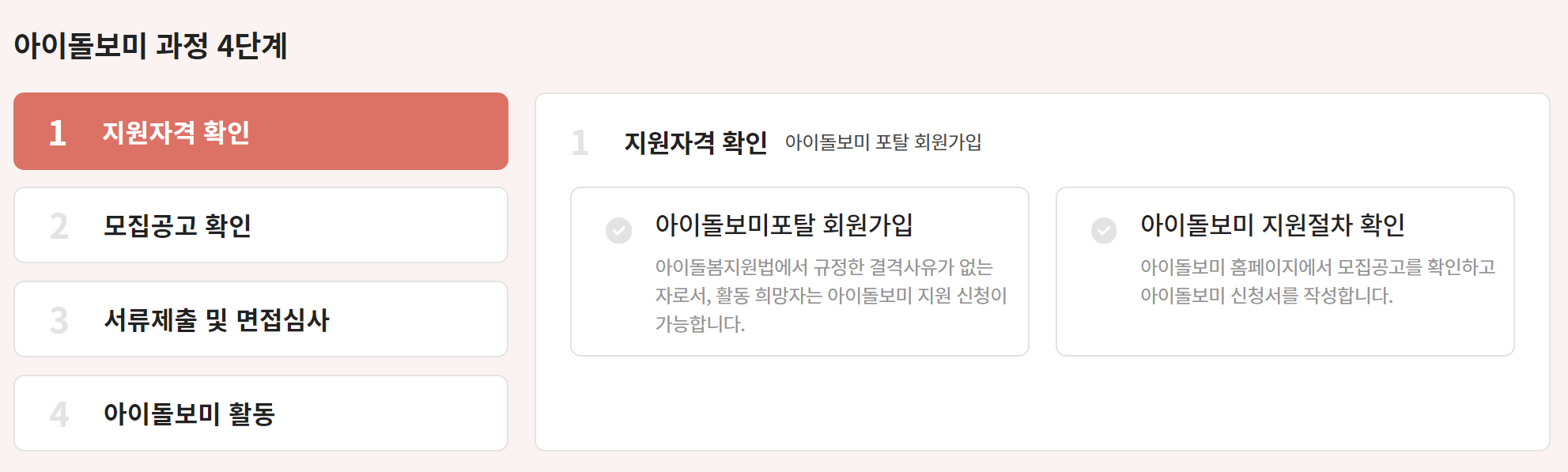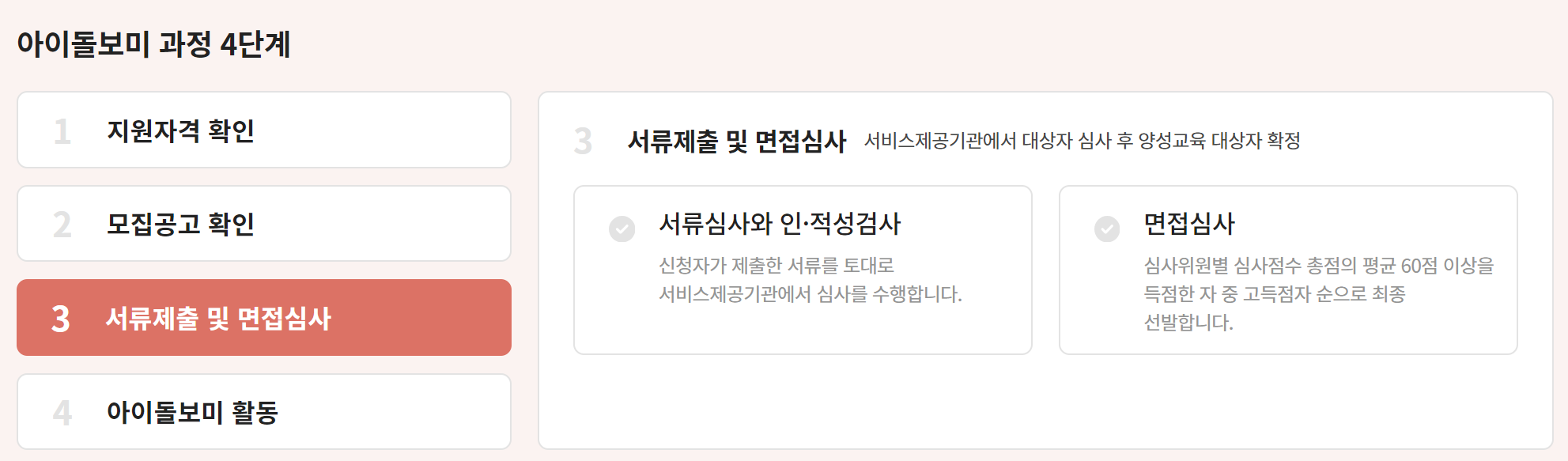 아이돌보미가 되기 위한 과정은 크게 4단계로 이뤄집니다.