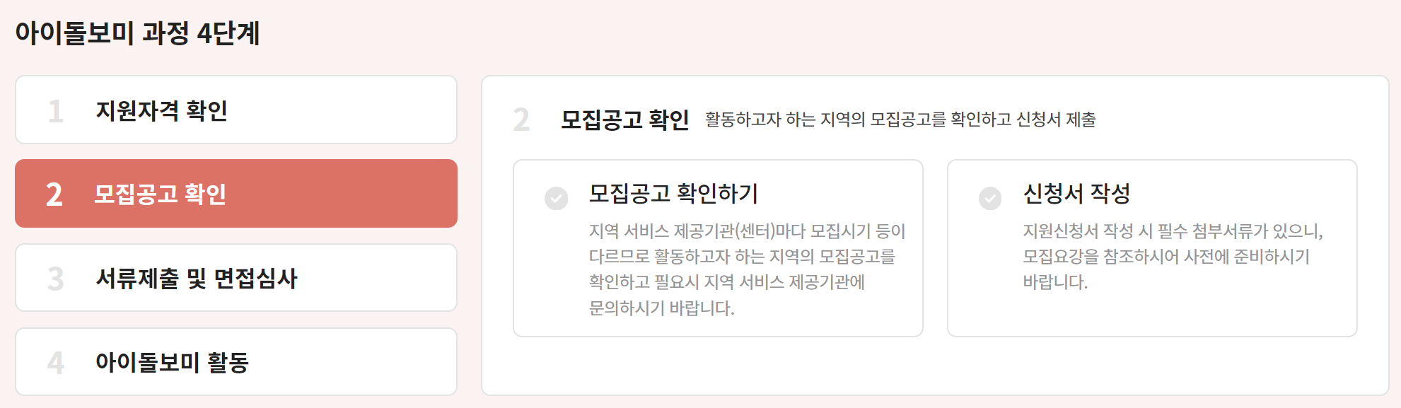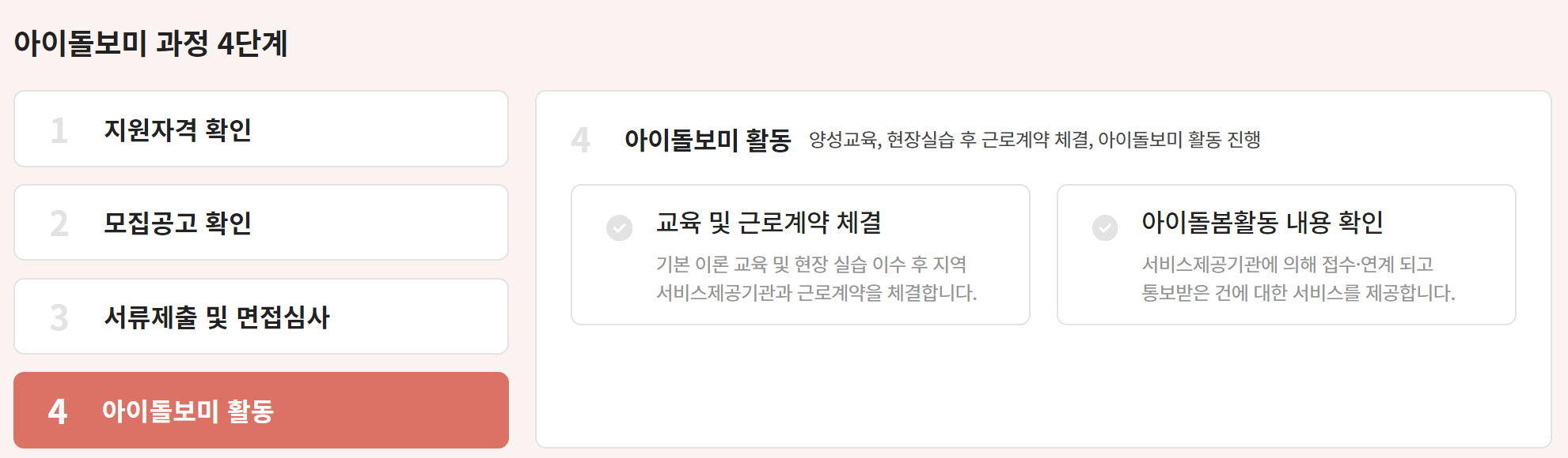 아이돌보미가 되기 위한 과정은 크게 4단계로 이뤄집니다.