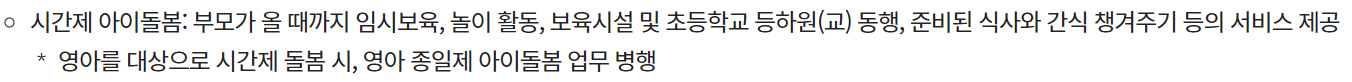 아이돌봄서비스는 시간제서비스, 영아종일제서비스가 있습니다.