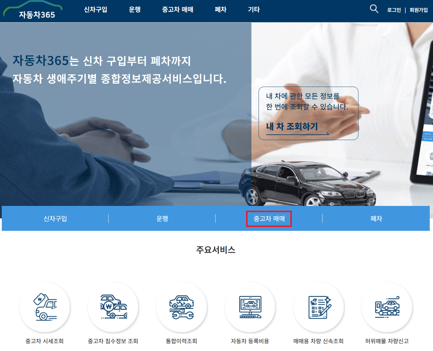 자동차365 사이트는 중고차시세, 중고차 침수 정보, 통합이력조회 등 다양하게 알아볼 수 있습니다. 국토교통부와 한국교통안전공단에서 운영하는 홈페이지며, 신차 및 중고차량, 폐차정보도 확인할 수 있습니다.