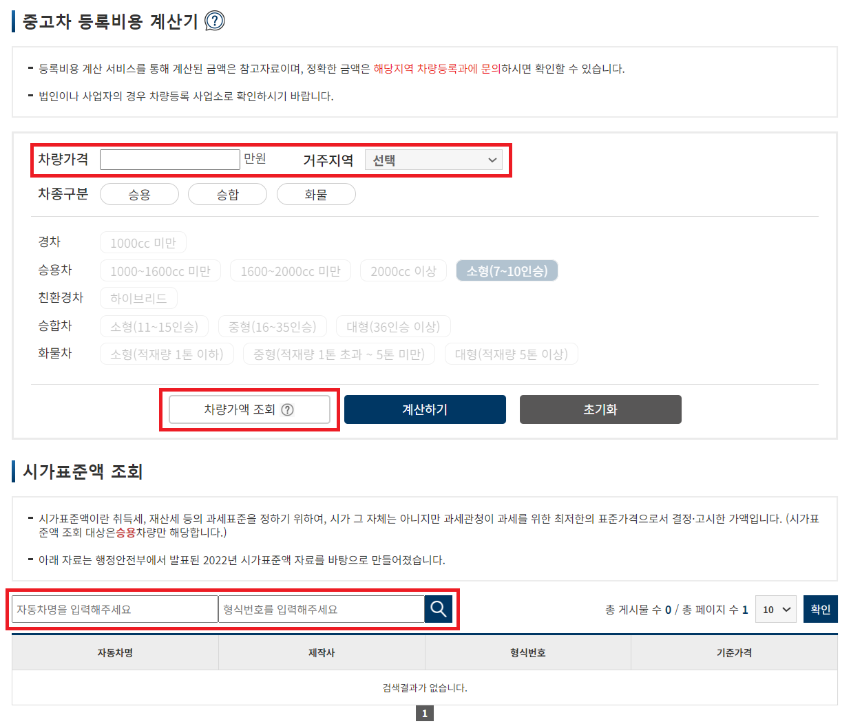 차량가액 조회 버튼을 누르고 자동차명과 형식번호를 입력하면 중고차 취등록세 게산기에서 쉽게 조회할 수 있습니다. 조회된 차량가액을 차량가격에 입력한 후 거주지역, 차종을 선택하면 됩니다. 실제 납부하게 될 중고차 취등록세 금액을 가늠할 수 있습니다.