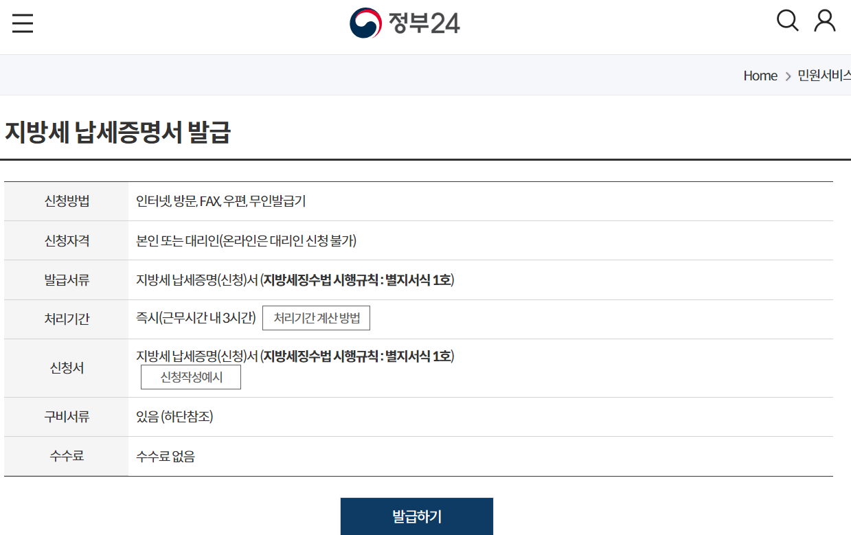 정부24에 접속후 검색창에 지방세 납세증명서를 검색하거나 아래를 눌러 접속합니다.