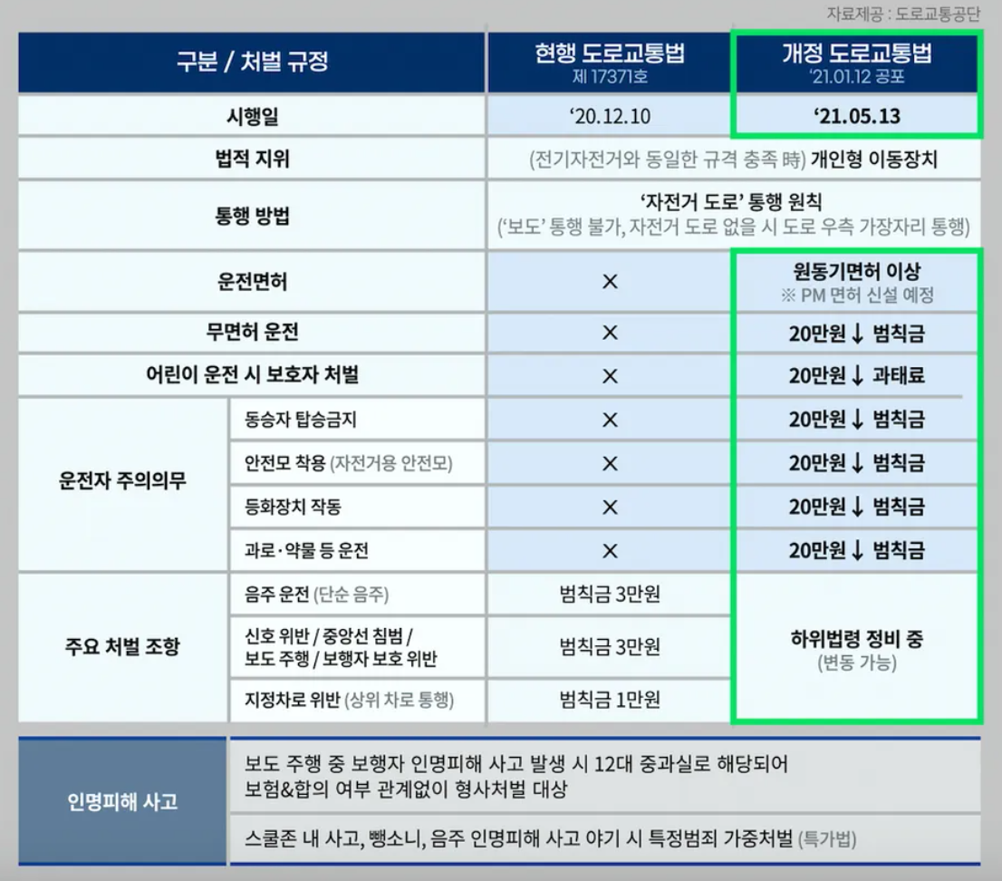 • 킥보드, 보행자 사고 발생 시 5년 이하의 징역이나 2,000만원 이하의 벌금 등 형사처분