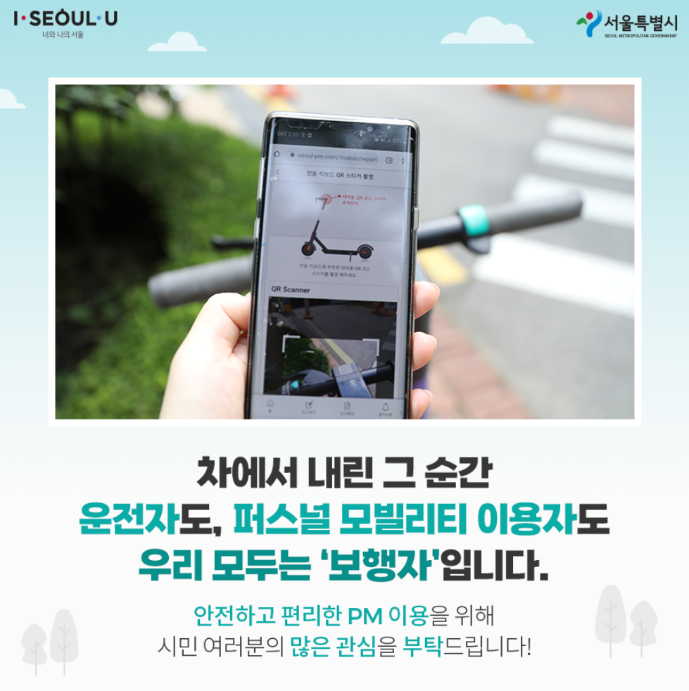개인형 이동장치(PM)는 전동킥보드, 전기자전거를 말합니다. 전기를 동력으로 사용하는 1인용 교통수단으로, 원동기장치자전거 중 최고속도 25km/h 미만, 총 중량 30kg 미만입니다. 여기서 전동킥보드는 법적으로 판매 시 최고속도 25km/h 제한을 걸도록 의무화되어 있으며 8월부터 12월말까지 사고 예방 및 인명피해 감소를 위해 20km/h로 제한할 예정입니다.