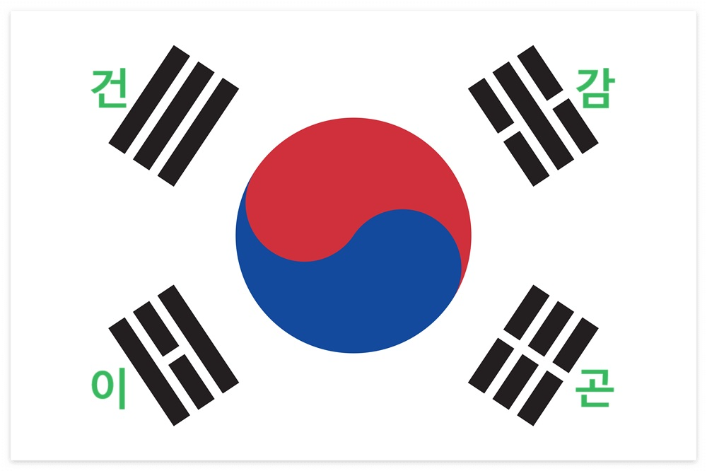 우리나라 국기인 태극기는 흰색 바탕에 가운데 태극문양이 있고 네개의 모서리에는 건곤감리(乾坤坎離) 4괘로 구성되어 있습니다.