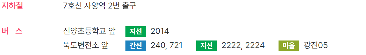 친환경 행사를 위해 대중교통 이용을 권장합니다. 지하철 7호선 자양역 2번 출구