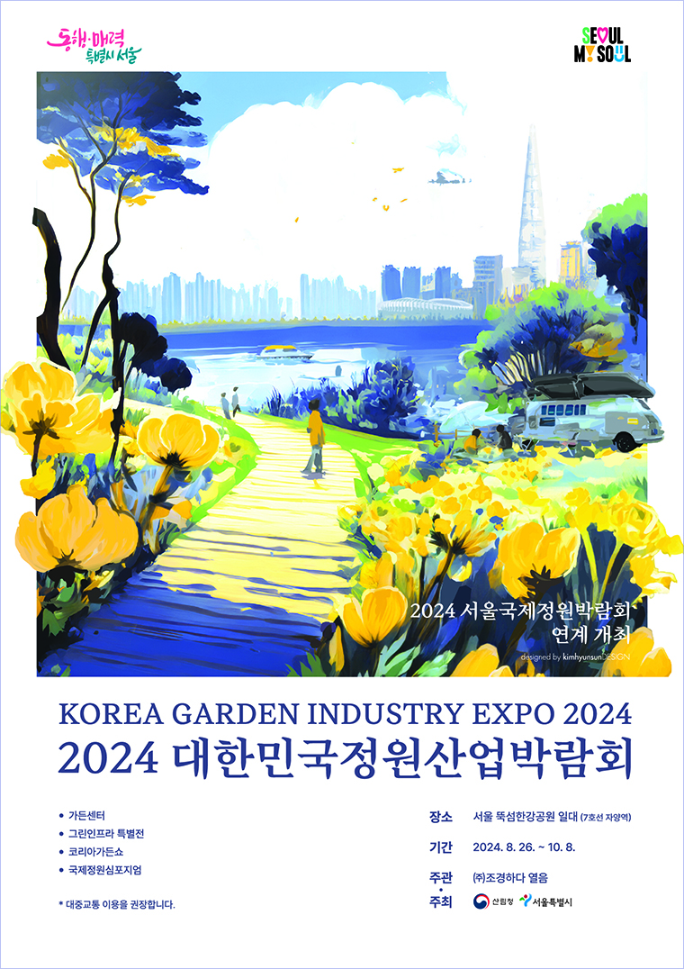 정원산업박람회는 산림청과 서울시에서 정원산업과 정원문화를 확산, 일자리 창출 및 경제 활성화하고자 주최하는 행사입니다. 매년 공모를 거쳐 개최 지자체가 선정되는데요. 올해는 서울국제정원박람회와 연계하여 진행됩니다. 개최지가 서울시로 선정된 이유는 한강이라는 장소성과 정원대축제의 열기를 이어갈 수 있어서 입니다.