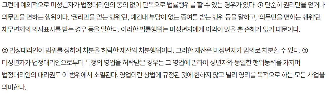 미성년자 나이라도 법률행위가 적용되는 사항들이 있습니다.